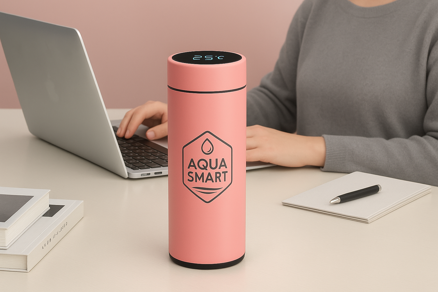 De AquaSmart Bottle is meer dan een drinkfles – het is jouw bureau-essential. Dankzij de geïntegreerde temperatuurdisplay weet je altijd hoe warm of koud je drankje is. Of je nu gefocust aan het typen bent of midden in een lange meeting zit, je blijft moeiteloos gehydrateerd.